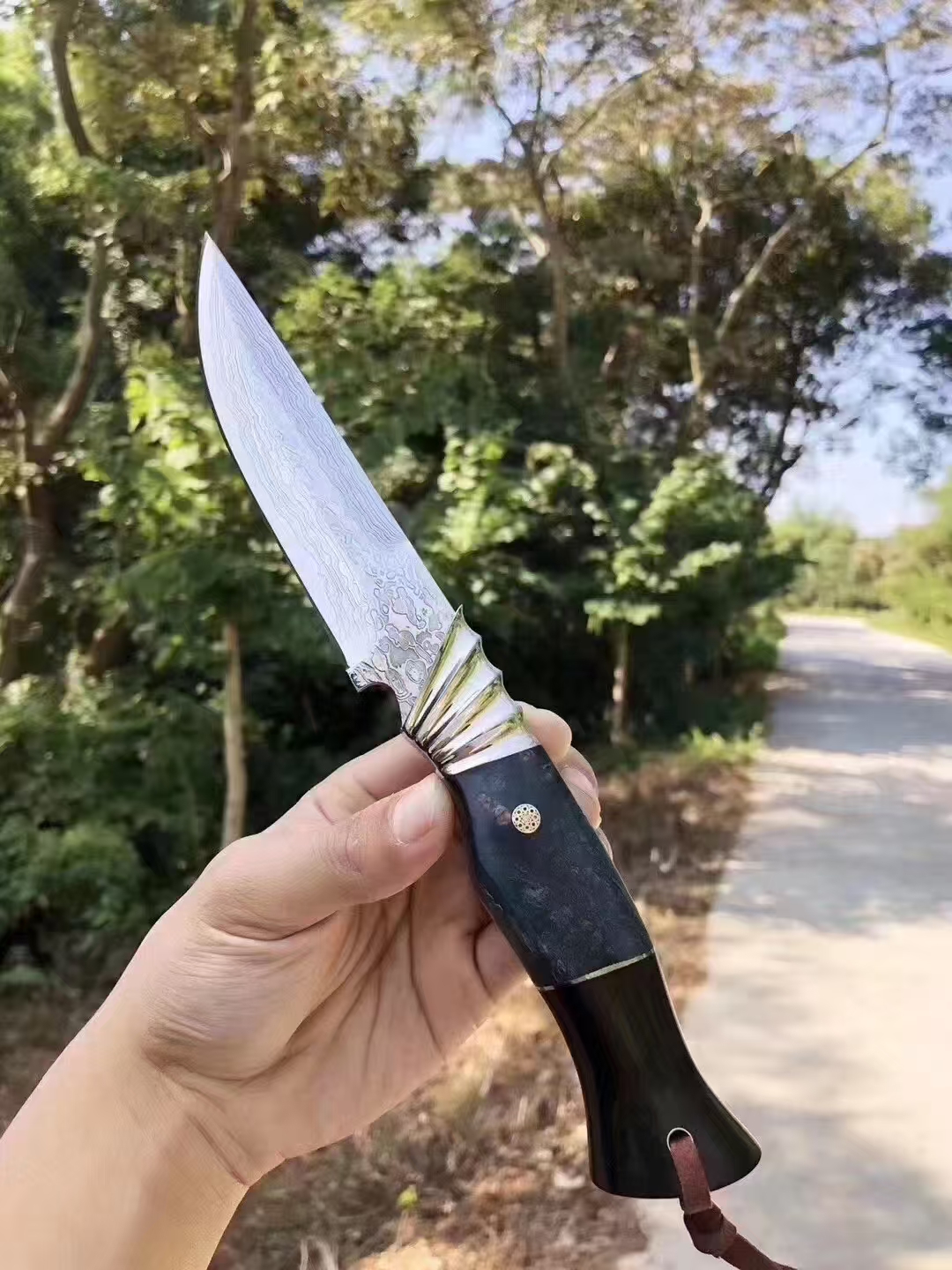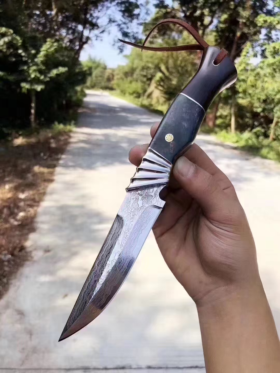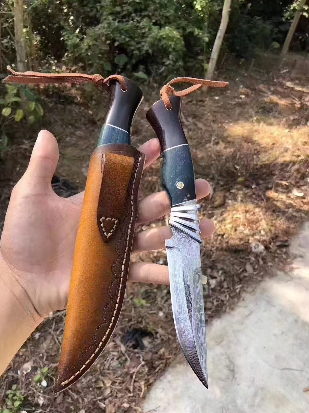 steel:Damascus steel handle:solid wood Bare knife weight:blade length:11cm full length :24cm Blade thickness:3.5mm