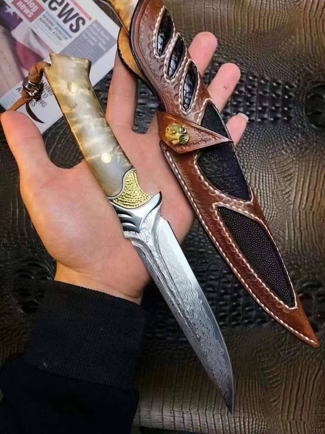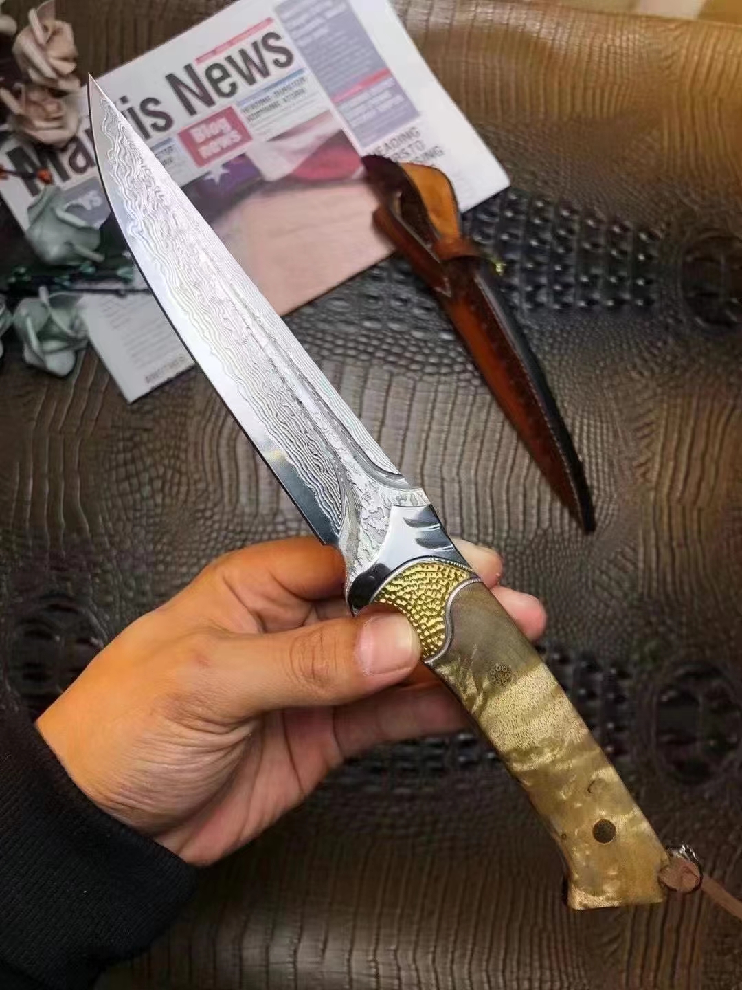 steel:Damascus steel handle:solid wood Bare knife weight: